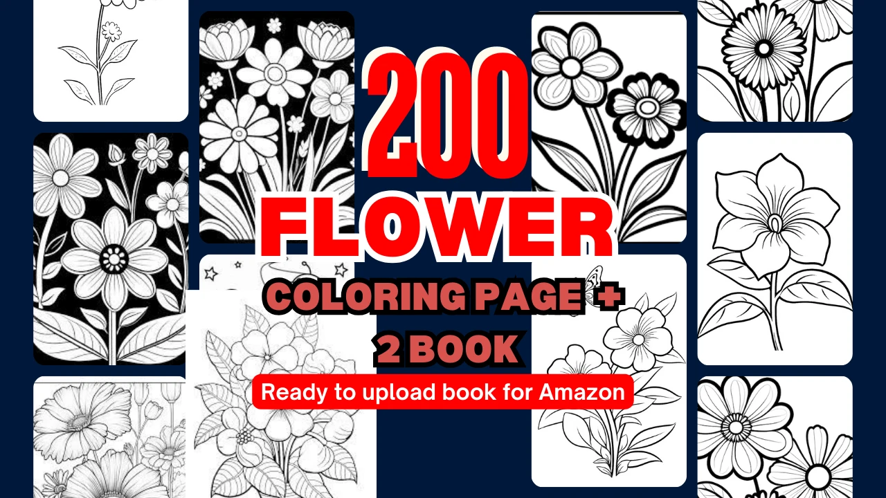 200 Flower Coloring Page+ 2 Book