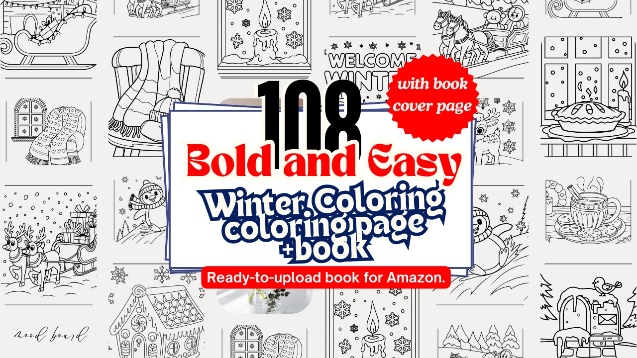 108 Bold and Easy Winter Coloring Page + Book