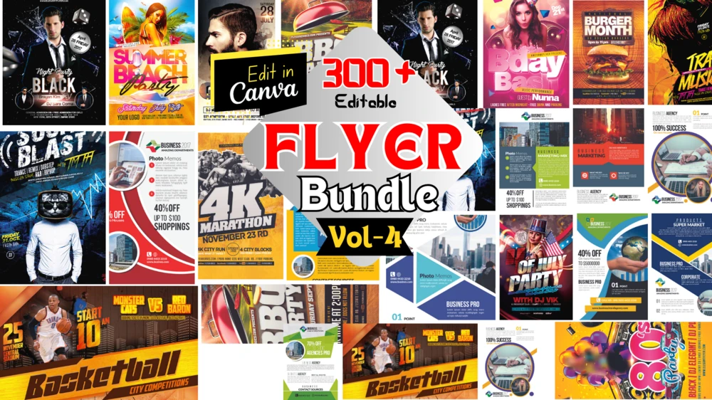 300+ Flyer Designs with Editable Canva Flyer Templates-vol-4 |Customizable Flyer Template | Boost Your Sales with Our Flyer Template Bundle