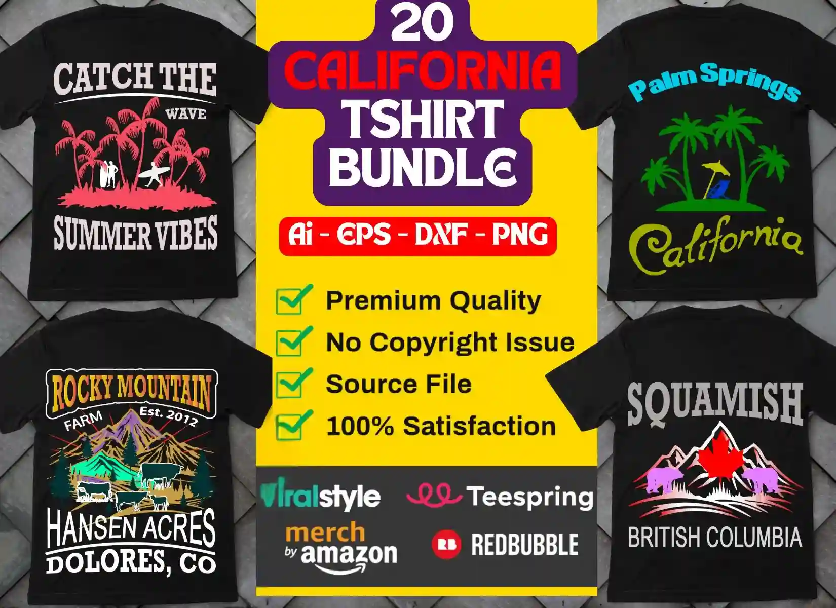 - Design Formats: EPS, AI, PNG, JPG, DXF