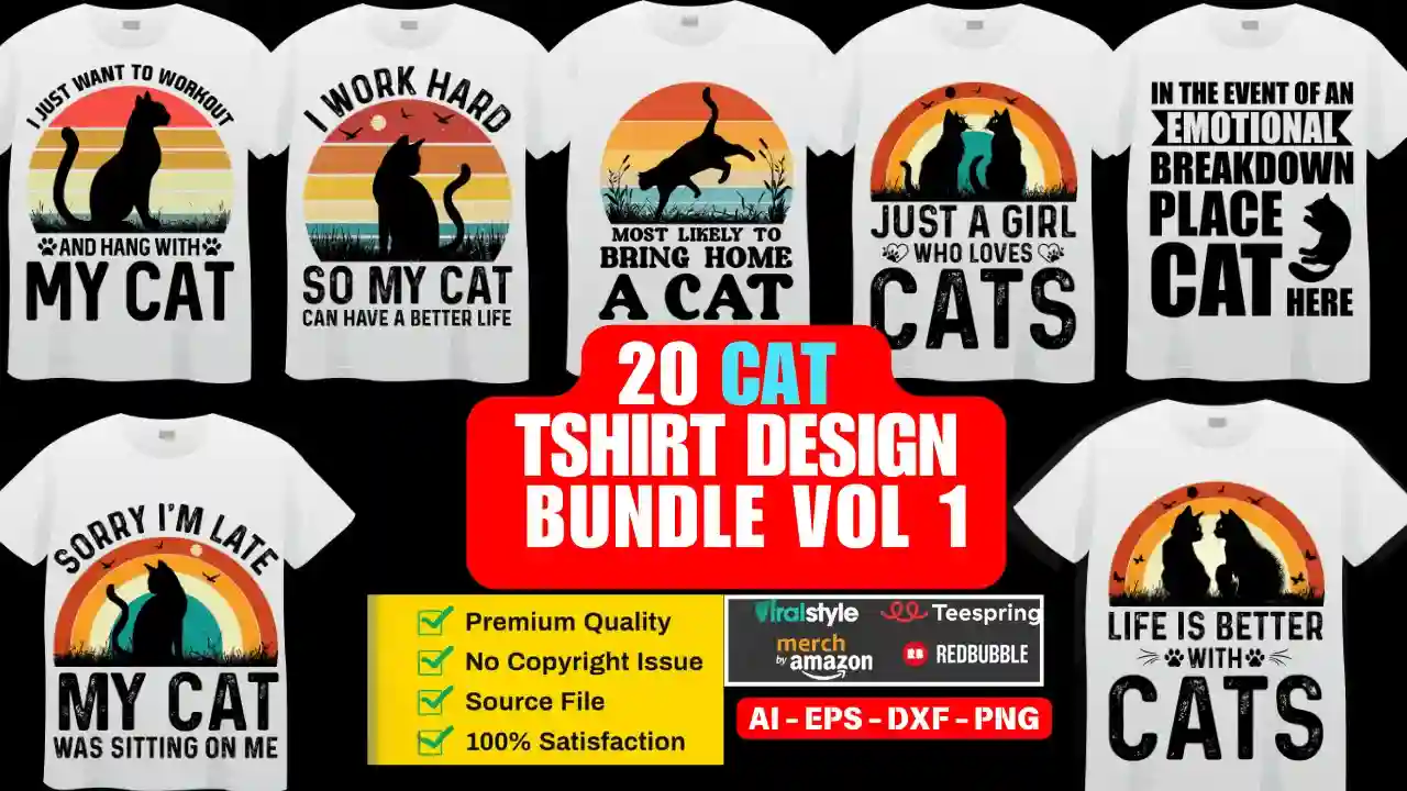 20 Cat-T-Shirt-Design-Bundle-Vol-2