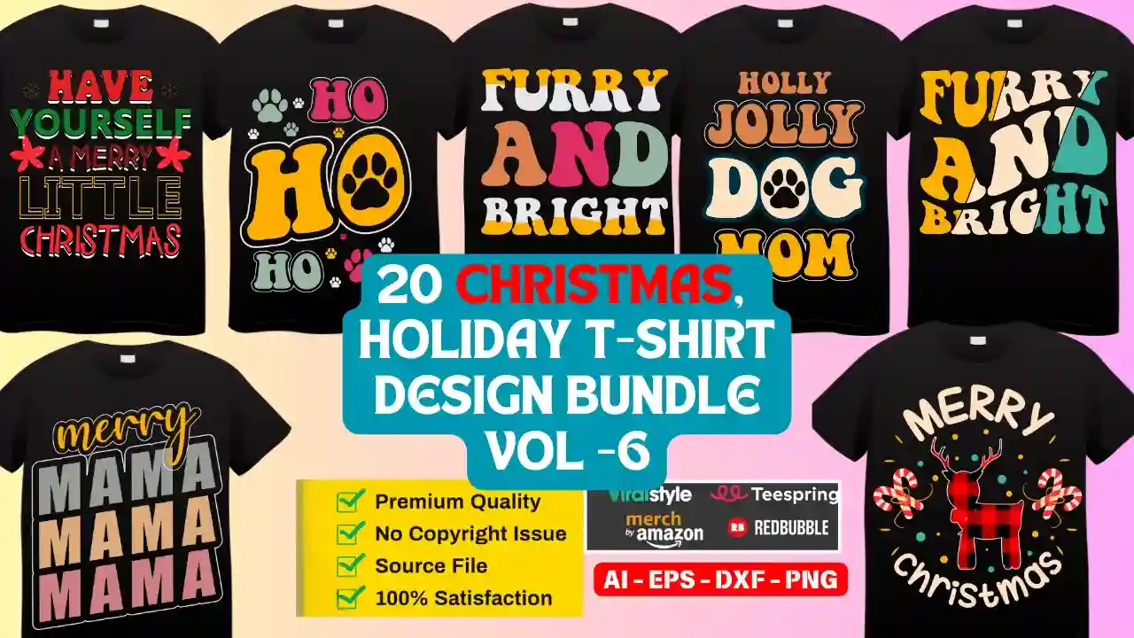 20 Christmas, Holiday T-Shirt Design Bundle Vol -6