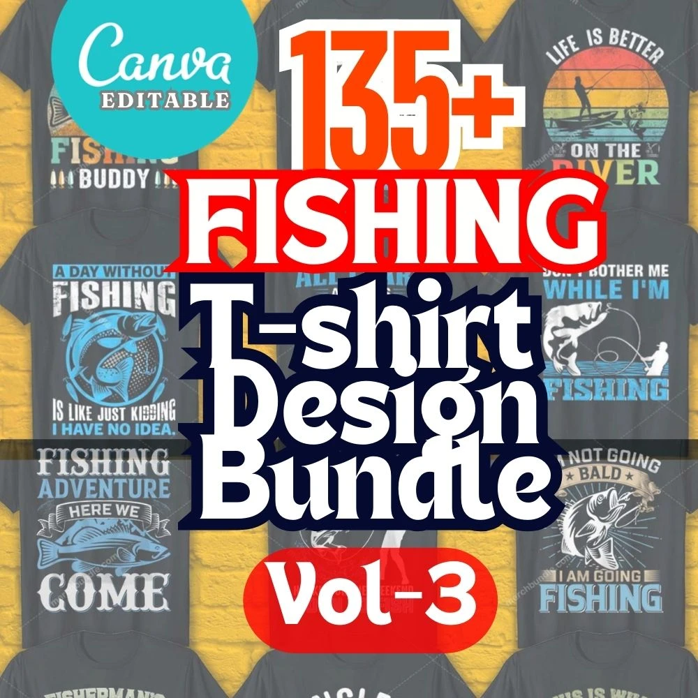 Exclusive Fishing T-Shirt Design Bundle – 135+ Stunning and Editable Designs for Fishing Enthusiasts & Brands