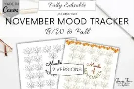 Stay connected to your emotions this November with our November Mood Tracker Canva template! This beautifully designed tracker helps you monitor your mood daily, allowing for greater self-reflection and awareness. Ideal for personal growth, mental wellness, and seasonal mindfulness, this customizable template fits perfectly into your digital planner or bullet journal, making emotional tracking simple and stylish.