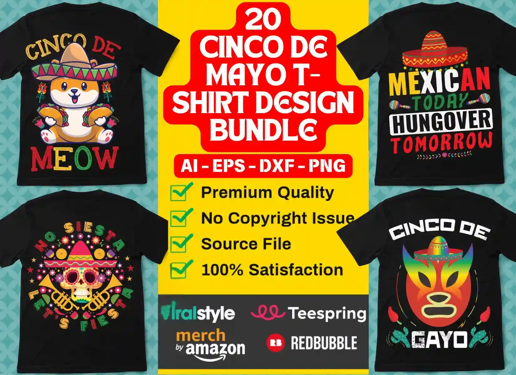 20 Cinco De Mayo T-Shirt Design Bundle