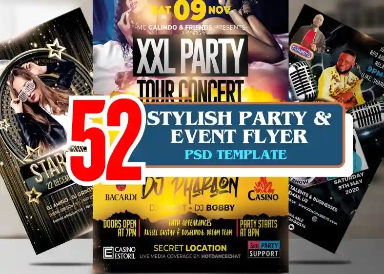 52- Stylish Party & Event Flyer PSD Instant Download & Customizable