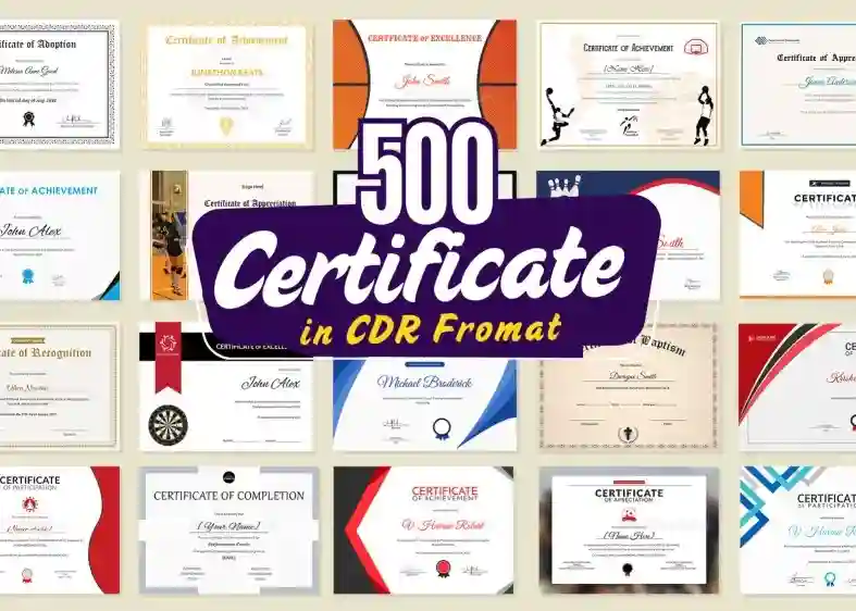 500 Editable Certificate Designs in CDR Format Professional & Print-Ready Bundle